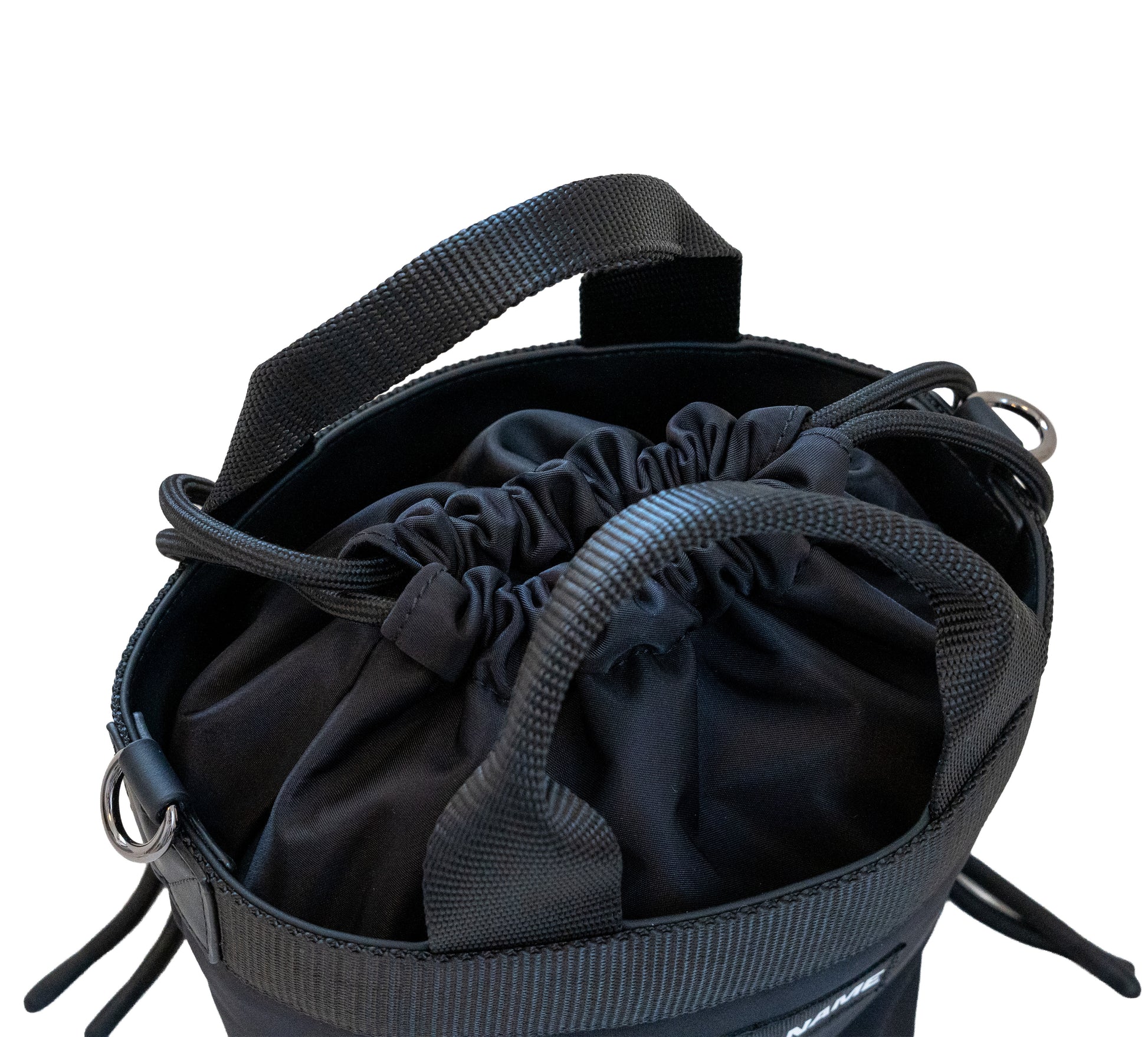 口元を絞っても、絞らずに中に入れ込んでも、お好きなようにご使用していただけます。また、付属のショルダーテープを付けてショルダーバッグとしてもご使用できます。